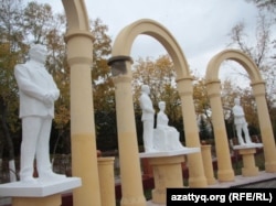 Перекрашенные скульптуры из композиции «Литераторы Казахстана и России». Петропавловск, октябрь 2010 года.