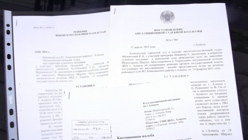 По ее словам, ранее ее муж, Шерзод Шерназаров, обжаловал отказ казахстанских миграционных служб в статусе беженца. Однако Алмалинский районный суд и апелляционная инстанция Алматинского городского суда отказали в его жалобе. Теперь на руках у нее копия жалобы в кассационную инстанцию Алматинского городского суда. Беженка разрешила корреспонденту нашего радио Азаттык сфотографировать первые листы этих решений судов первой и второй инстанций, а также кассационной жалобы.