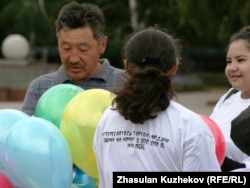 Активисты неправительственных организаций выпускали шары в небо в память жертв работорговли. Астаны, 23 августа 2010 года.