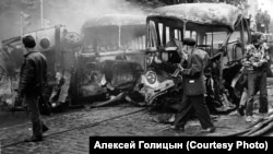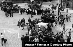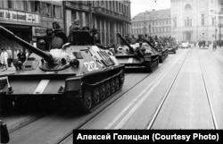 Русская редакция Азаттыка – Радио Свобода – с любезного разрешения Алексея Голицына впервые публикует эти уникальные фотографии. В альбоме не указаны точные даты снимков, но, судя по запечатленным на них событиям, все они сделаны в первый день после ввода войск, утром и днем 21 августа. Алексею Голицыну и Радио Свобода не удалось установить имя автора фотографий.