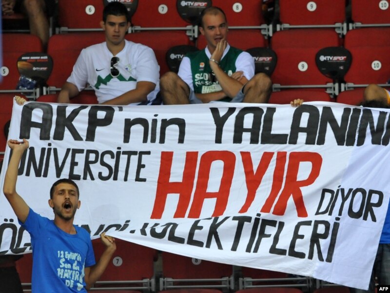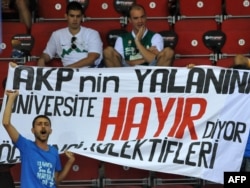 Студенты держат плакат "Университет говорит "Нет" лжецам из АКП" (партии "Справедливость и развитие"). Стамбул, 2 сентября 2010 года.