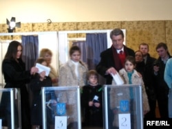 Президент Украины Виктор Ющенко с семьей на избирательном участке в день голосования. Киев, 17 января 2010 года.