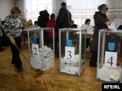 Урны для голосования на избирательном участке в день выборов президента. Киев, 17 января 2010 года.