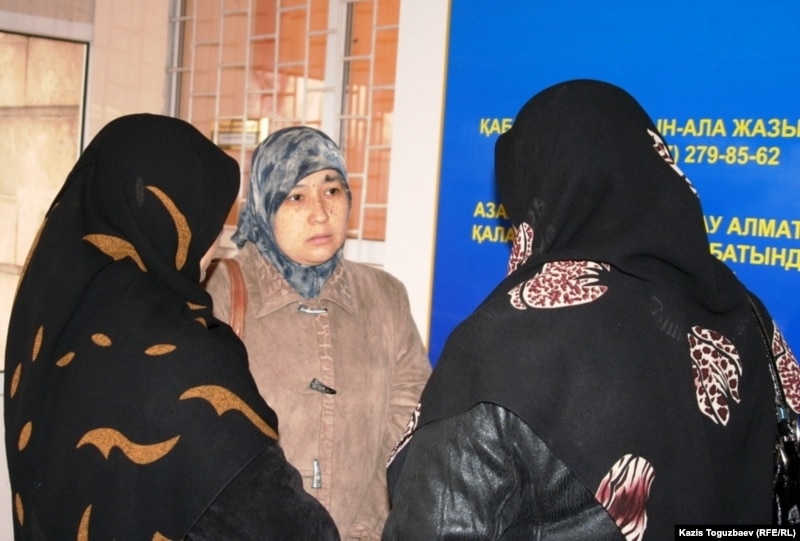 Жены узбекских беженцев-мусульман в здании Алмалинского районного суда. Алматы, 21 декабря 2010 года.