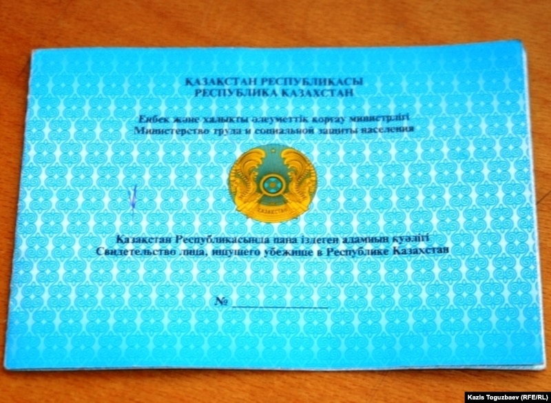 Обложка миграционной карточки, выданной казахстанскими властями женам узбекских беженцев-мусульман вместо отозванного у них мандата беженца ООН. Алматы, 21 декабря 2010 года.
