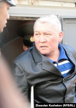 Бывший министр Жаксылык Доскалиев в момент, когда его выводят из здания суда. Астана, 10 мая 2011 года.